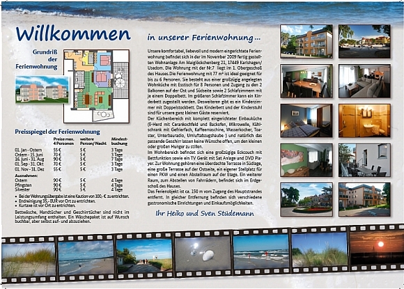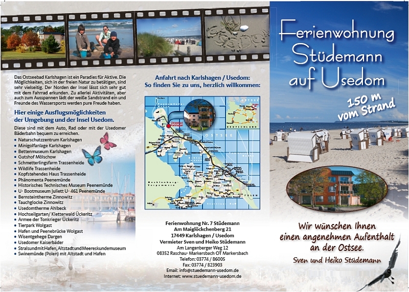 Auf unserem Flyer finden Sie wertvolle Tips für Ihren Urlaub auf der Insel Usedom sowie zu Ihrer Unterkunft .